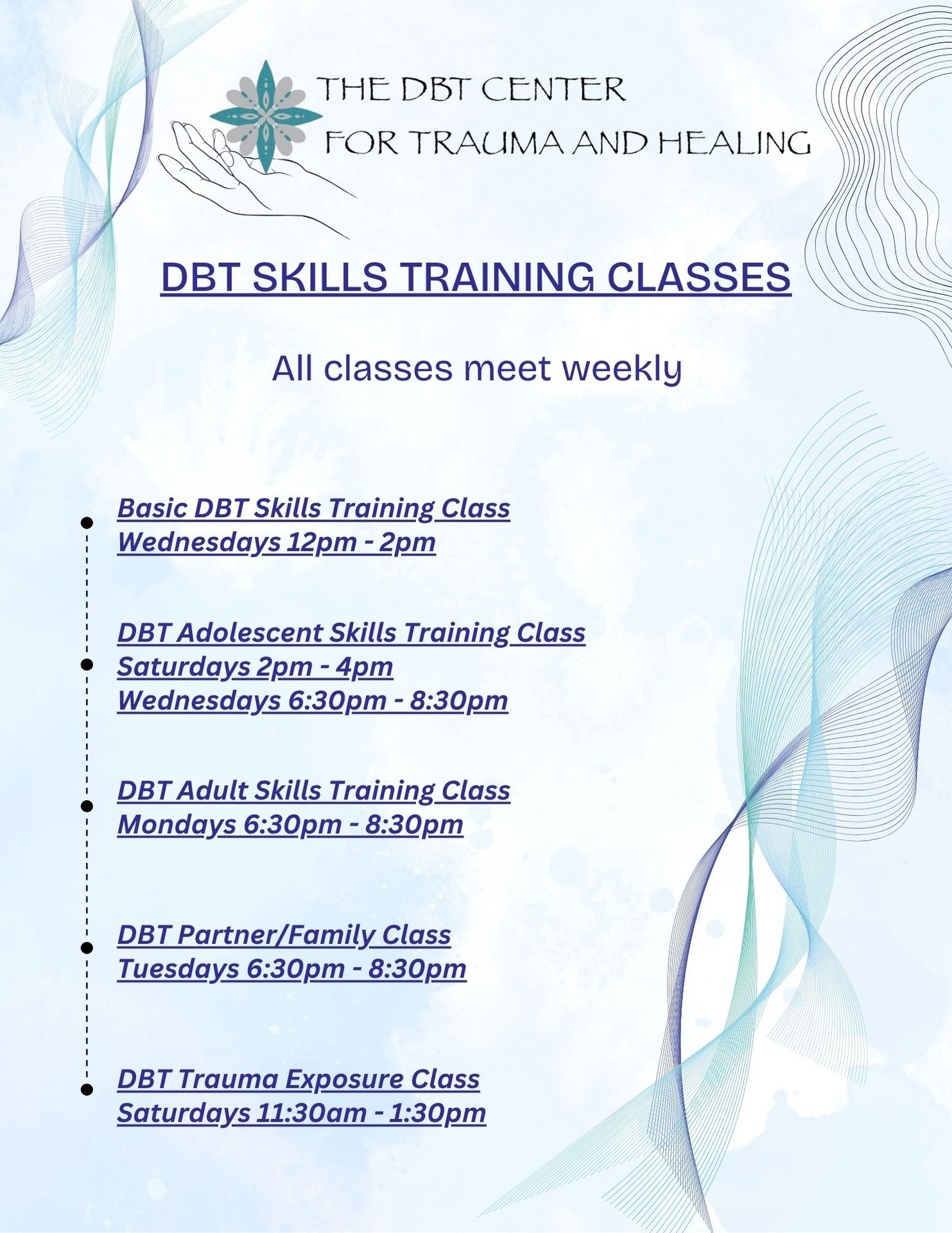 We are offering a 12 week DBT Intensive Course that will be coming soon! Contact us today to reserve your spot.